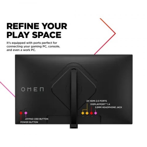 The HP OMEN 32C is a stunning 31.5-inch QHD curved gaming monitor that promises an immersive and smooth gaming experience. With a resolution of 2560 x 1440, it provides clear and vivid graphics that bring your games to life. The monitor has a VA screen with a high refresh rate of 165Hz and a GTG reaction time of 1ms, resulting in smooth and responsive gameplay with minimum motion blur. Whether you're racing through fast-paced action games or immersing yourself in cinematic adventures, the HP OMEN 32C never stops moving. A variety of connectors, including 1 x DisplayPort, 2 x HDMI, and a 3.5mm audio jack, enable you to quickly connect your gaming PC, consoles, and other devices. Additional features include AMD FreeSync technology, which helps to avoid screen tearing and stuttering, and Low Blue Light mode, which decreases eye strain during lengthy gaming sessions. The 1500R curvature of the screen wraps around your field of view, increasing immersion and making every gaming session more enjoyable. With its remarkable qualities and features, the HP OMEN 32C is an excellent choice for gamers seeking a high-performance, immersive gaming monitor. Frame by frame, follow the action without interruptions. To keep things smooth, this OMEN 32C display has a quick 165Hz refresh rate to reduce motion blur, so every pixel moves with you. AMD FreeSync Premium technology effectively eliminates screen tearing and latency. Mistake virtual for real with the immersive 1500R curve and sharp QHD quality images with HP OMEN 32C. Escape into a broad range of brilliant colors, hues, and tints for lifelike gaming, with 99% sRGB and 90% DCI-P3 color gamuts. HDR and up to 400 nits of brightness let you to see details and shading even in the shadows. The OMEN 32C has 165Hz refresh rate and 1ms Moving Picture Response Time (MPRT) reduce smearing and motion blur, making it excellent for fast-paced games requiring quick reactions to what's onscreen. Furthermore, Adaptive-Sync technology prevents screen tearing and choppy frame rates, resulting in ultra-smooth gameplay. The OMEN 32C monitor is designed to wow both within and outside of the game, combines sophistication and fun to boost the appearance of a gaming setup. It has connectors for connecting your game PC, console, and even a business PC. Your desk will be just as you want it with the simple cable management and adjustable stand.