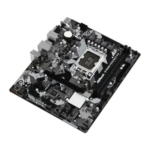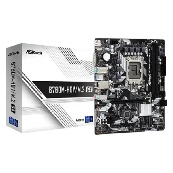 The ASRock B760M-HDV/M.2 D4 Motherboard supports 14th, 13th  and 12th Gen Intel Core processors on the LGA1700 socket. With its 5+1+1 Power Phase design, it ensures stable power delivery for optimal performance. This motherboard supports speedy DDR4 memory clocked at 5333MHz (OC), allowing for smooth multitasking and efficient data handling. This 14th Gen Motherboard offers a range of expansion options, including 1 PCIe 4.0 x16 slot, 2 PCIe 3.0 x1 slots, and 1 M.2 Key E slot for WiFi connectivity. For graphics output, you have multiple choices with HDMI, DisplayPort, and D-Sub options. The Realtek ALC887/897 7.1 CH HD Audio Codec provides excellent audio quality for an immersive sound experience. It offers 4 SATA3 ports, 1 Hyper M.2 (PCIe Gen4x4), and 1 Ultra M.2 (PCIe Gen3x4 & SATA), ensuring you have plenty of options for connecting storage devices. The motherboard also features a convenient array of USB ports, including 1 USB 3.2 Gen1 Type-C at the rear, 5 USB 3.2 Gen1 Type-A (3 at the rear, 2 at the front), and 5 USB 2.0 ports (2 at the rear, 3 at the front). ASRock B760M-HDV/M.2 D4 Motherboard includes Realtek 1G LAN for reliable and high-speed networking. The ASRock Auto Driver Installer simplifies driver installation, making it user-friendly and convenient.