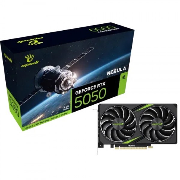 Manli Nebula GeForce RTX 5050 8GB GDDR6 Graphics Card is a compelling graphics card built for immersive experiences and professional-grade rendering. Equipped with 2560 NVIDIA CUDA cores and a blazing-fast 8GB GDDR6 memory clocked at 20.0Gbps, this GPU delivers exceptional throughput and responsiveness. Its advanced DLSS 4 technology introduces Multi Frame Generation and enhanced Ray Reconstruction, enabling ultra-realistic visuals and smoother frame rates even in demanding titles. Thermal Mastery and Acoustic Efficiency The Manli Nebula GeForce RTX 5050 8GB Graphics Card features a precision-engineered heatsink with Twin Cooler design, ensuring optimal heat dissipation across its compact 2-slot width. The die-cast shroud and reinforced metal backplate not only enhance durability but also contribute to thermal stability during extended gaming sessions. At idle, the intelligent An-stop function halts fan rotation to minimize noise and conserve energy—ideal for quiet environments and energy-conscious users. Performance That Scales Running at a base clock of 2317MHz and boosting up to 2572MHz, the RTX 5050 is optimized for high-speed rendering and real-time ray tracing. Its 128-bit memory interface and up to 320 GB/s bandwidth ensure seamless data flow, reducing latency and improving overall system responsiveness. Whether you're gaming in 1440p, editing 4K video, or streaming high-resolution content, this Manli Nebula GeForce RTX 5050 GPU delivers uncompromising performance. Connectivity and Compatibility Designed for modern setups, the Manli Nebula GeForce RTX 5050 offers versatile display output options including three DisplayPort and one HDMI, supporting multi-monitor configurations and high refresh rate displays. With a power draw of just 130W and a sleek form factor, it fits comfortably into most mid-sized builds without sacrificing power or efficiency. Whether you're chasing extreme settings in AAA games or speeding up your creative process, the Manli RTX 5050 is your ticket to next-generation performance. With DLSS 4 and real-time ray tracing, it improves your visual experience, providing cinematic quality and a competitive advantage in every frame.